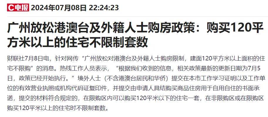 日前,一则关于“广州放松对港澳台及外籍人士购房限制,建面120平方米以上面积的住宅不限购。”在市场上引发热议。