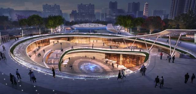 将园林和广场设为古塔的前景,未来,将在此处举办各式各样的活动,建筑与景观相互渗透,层叠台阶兼顾座位休憩、观赏功能,形成交互式多功能空间。