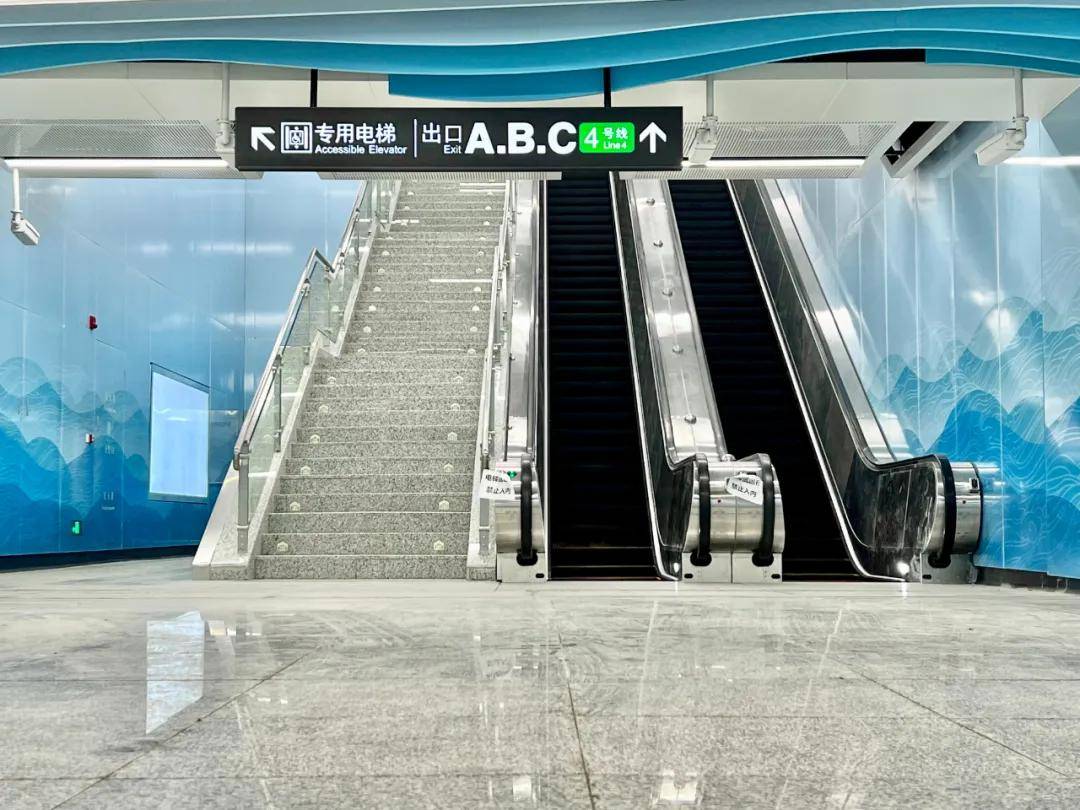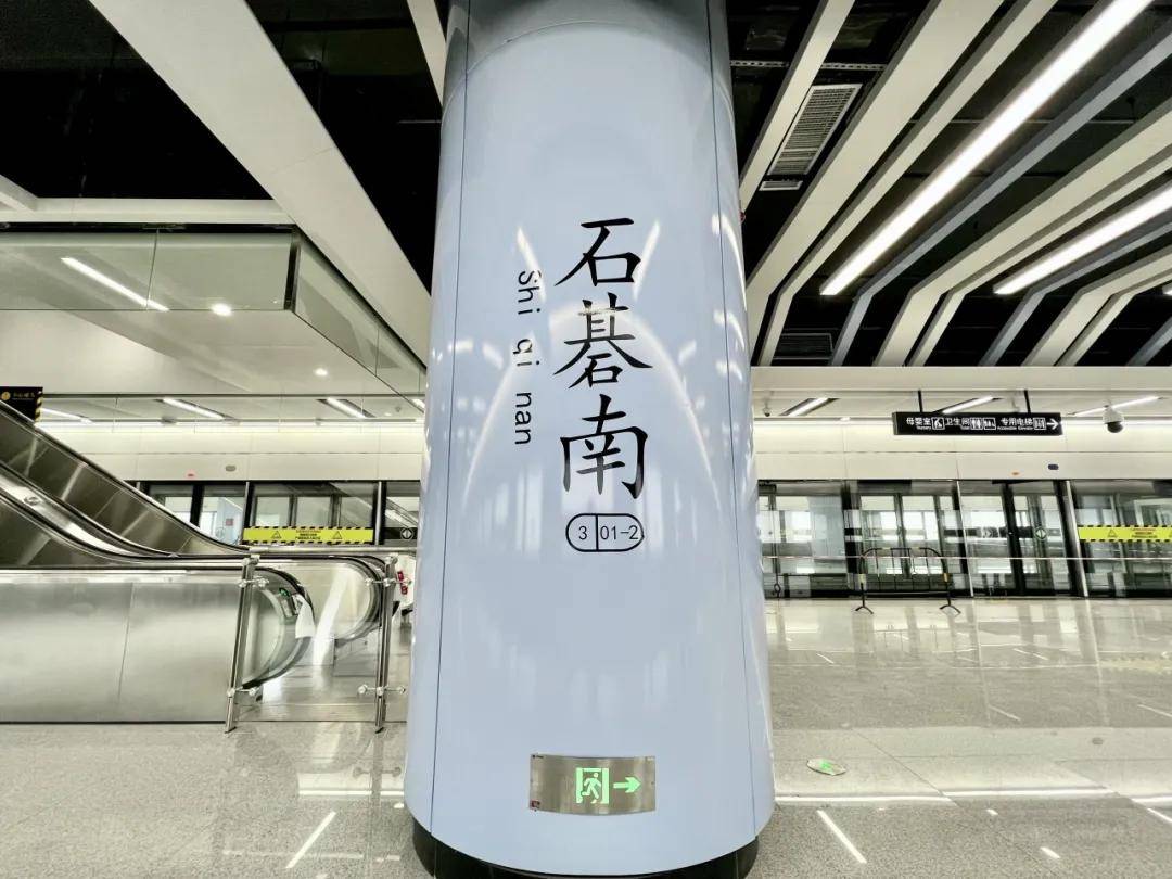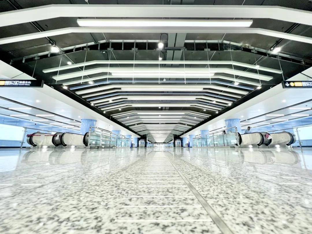 石碁南站明显更有“空间感”,站厅采用拱顶的设计和施工理念,中部层高达5.15米,使车站整体视觉上更宽敞、更简洁明快。