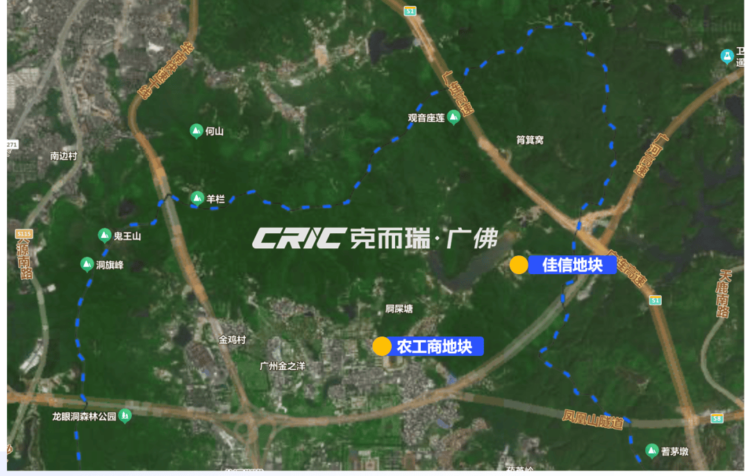 凤凰农工商及佳信地块位于天河北部凤凰街道,佳信地块位于龙洞水库旁有一定景观资源,具备打造度假、改善产品的条件;凤凰农工商地块位于工程技术学院北侧,周边城中村环绕,城市界面较差,加之无地铁通达,未来项目去化有一定难度。